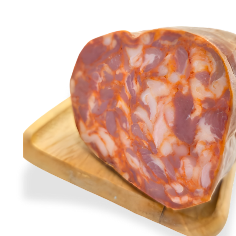 A paiola alentejana é um enchido nobre, feito com carne de porco cortada em pequenos pedaços e temperada com alho, sal, massa de pimentão e louro. Apresenta-se em forma de fuso irregular, com uma cor vermelha intensa e um sabor marcado, fiel à tradição alentejana. Produzida em tripa natural, reflete o cuidado artesanal e a autenticidade de cada peça.