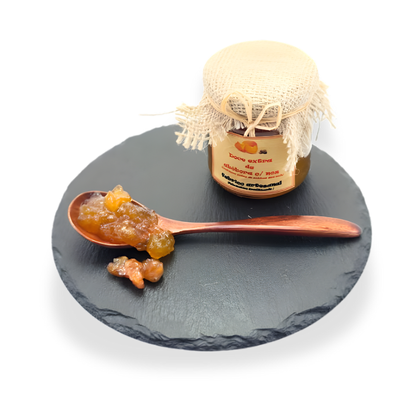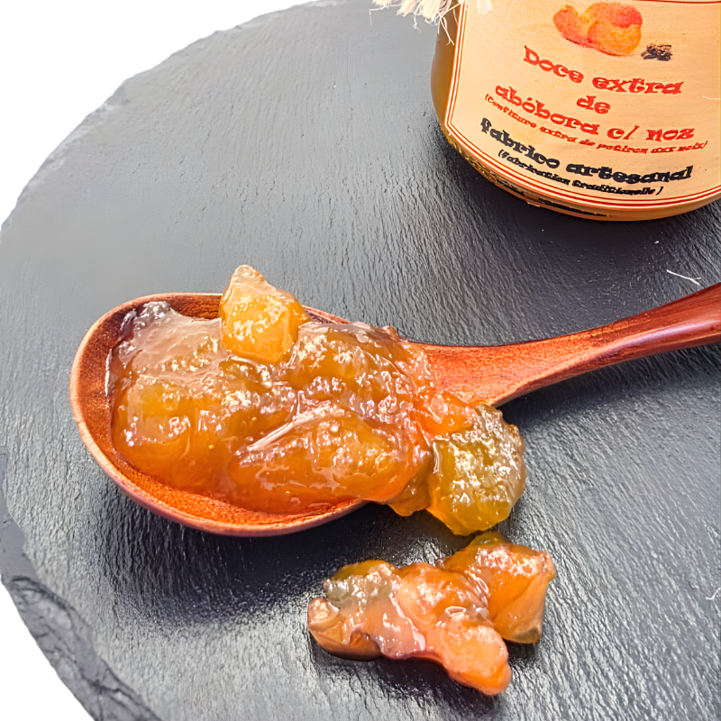 O doce de abóbora com noz combina fruta da região e pedaços de noz que lhe dão textura e profundidade. Sem corantes nem conservantes, contém pelo menos 50 g de fruta por cada 100 g de açúcar. Um doce tradicional e equilibrado, preparado com cuidado e respeito pela tradição.